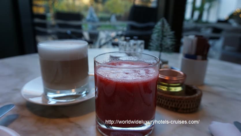 初日同様、カフェオレと、ベリ―ジュース。数種のベリーミックスで、パリのランカスターホテルで飲んで依頼、メニューにあると必ず選びます。無い場合でも聞いてみます。